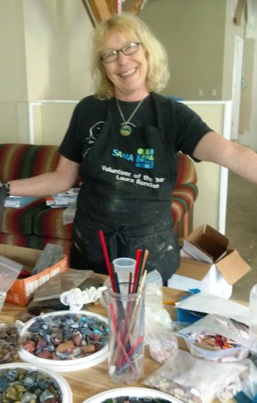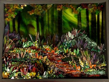 LAURA WILL SHOW YOU HOW TO BUILD A 3D LANDSCAPE ON AN 11" X 14"SUBSTRATE USING VARIOUS MATERIALS LIKE FOAM, MESH, SCREEN, ETC. CHOOSE FROM HER HUGE BUFFET OF TESSERAE, STONE CRYSTALS AND MORE TO CREATE YOUR IMAGINARY OR PHOTO INSPIRED SCENE. DISCUSSIONS INCLUDE MANY GREAT TIPS FOR LANDSCAPES, SHADOWS, AND LIGHT AND LESSONS WITH DIFFERENT ADHESIVES.